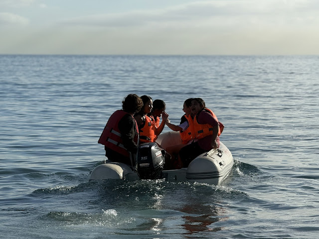 Finalment, a la taula s'ha recreat l’oceà amb diferents materials blaus i transparents, on els infants han pogut jugar amb animals marins com taurons, orques i balenes. Aquesta proposta ha permès als nens i nenes experimentar amb els animals que viuen al fons del mar, i imaginar-se nedant amb ells en les profunditats.